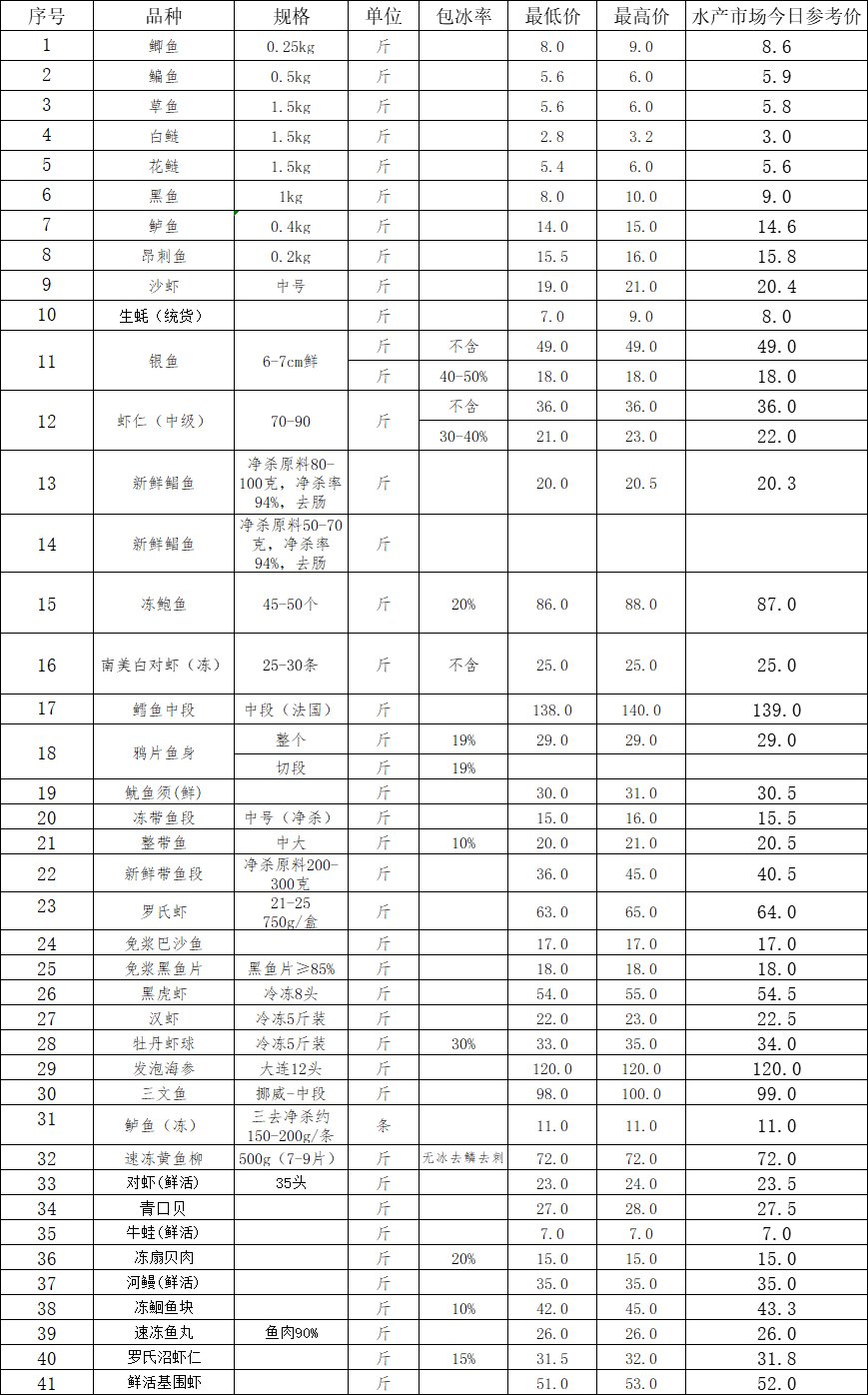 水产价格