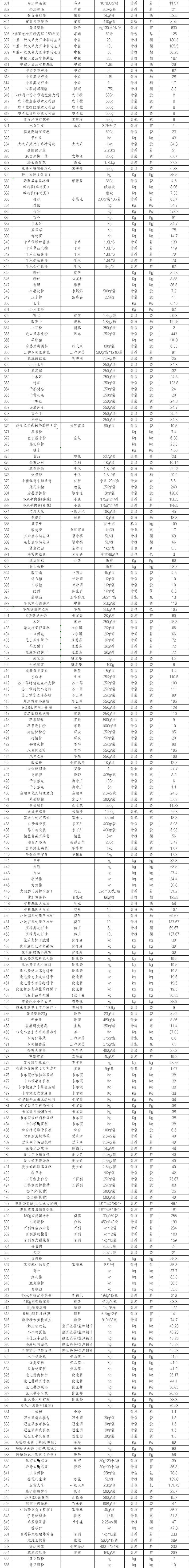 2025年3月12日副食价格参考表